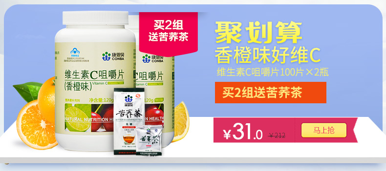 CONBA/康恩贝 维生素C咀嚼片(香橙味) 1.2g/片*100片*2瓶套餐