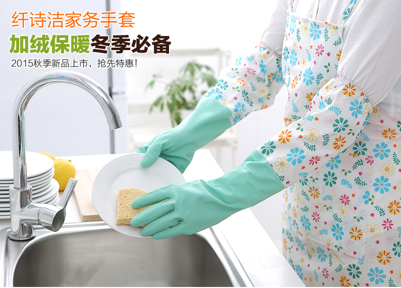 3双装厨房家用洗碗手套加长洗衣加绒加厚耐用家务手套清洁加长